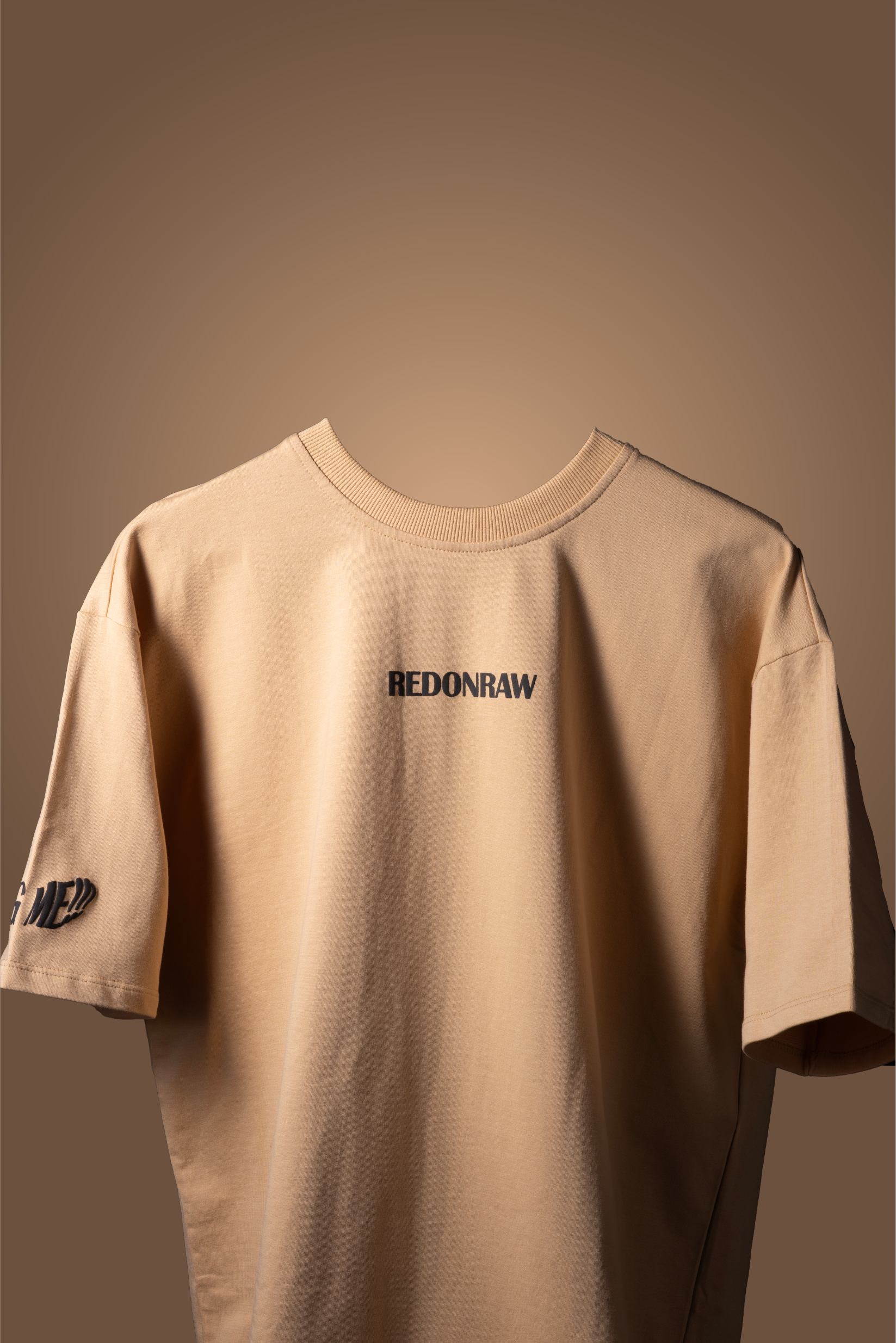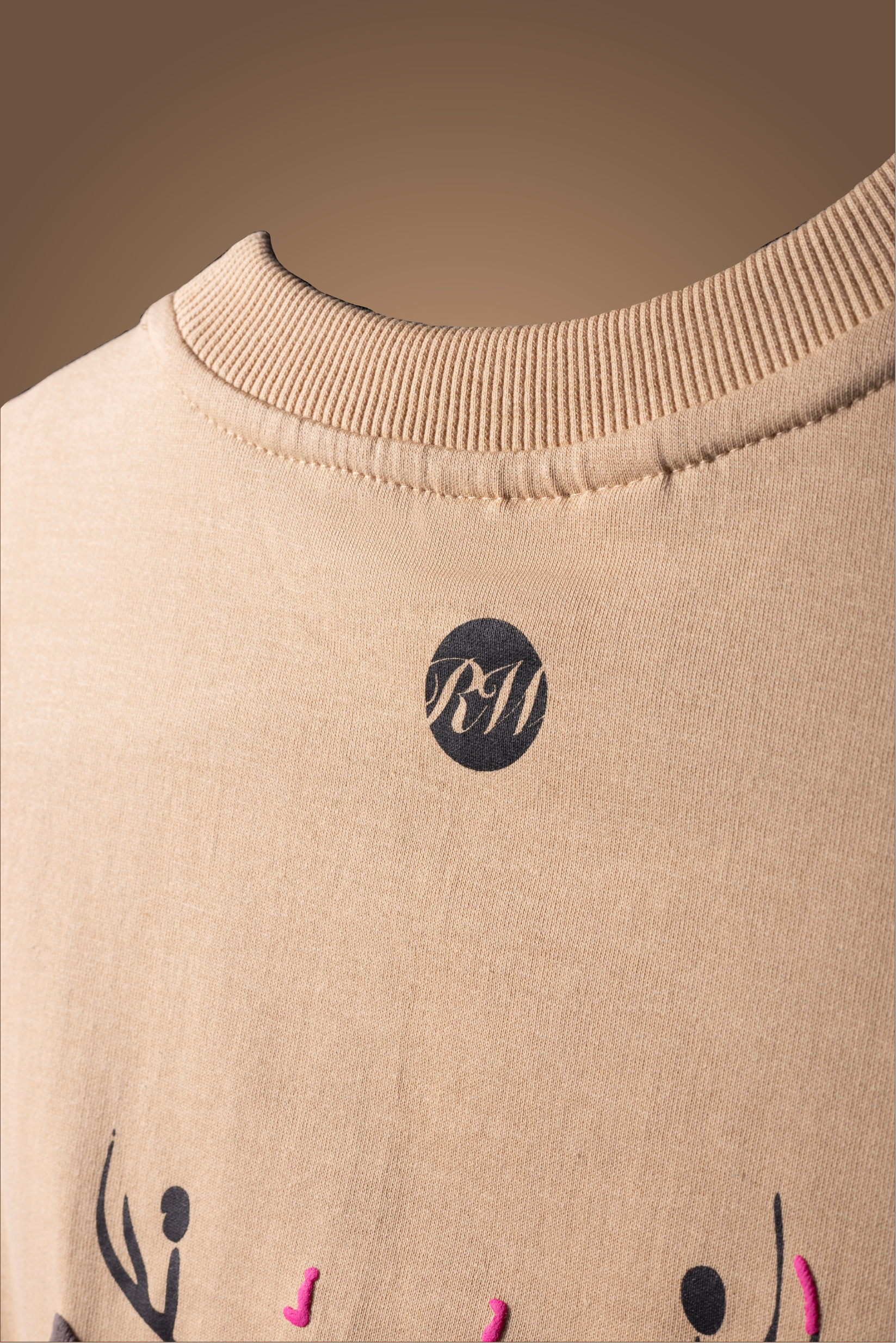 THE DENSE PRINT ON THE BACK IS BACK! OVERSIZED T-SHIRT IN BEIGE WITH ROUND NECKLINE AND OFF DROP SHOULDERS. BLACK COLOUR PUFF PRINT ON FRONT AND SLEEVES WITH SIX COLOUR DENSE BEETLE PRINT ON BACK.